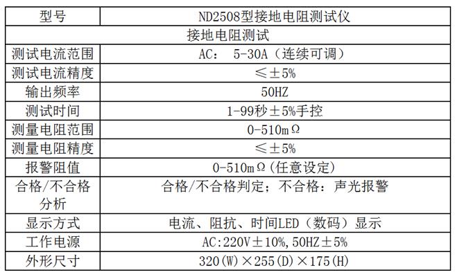 ND2508型交流接地電阻測試儀適合用于測量各種電機(jī)、電器、儀器儀表、家用電器等設(shè)備的外殼與其接地線之間的電阻值。